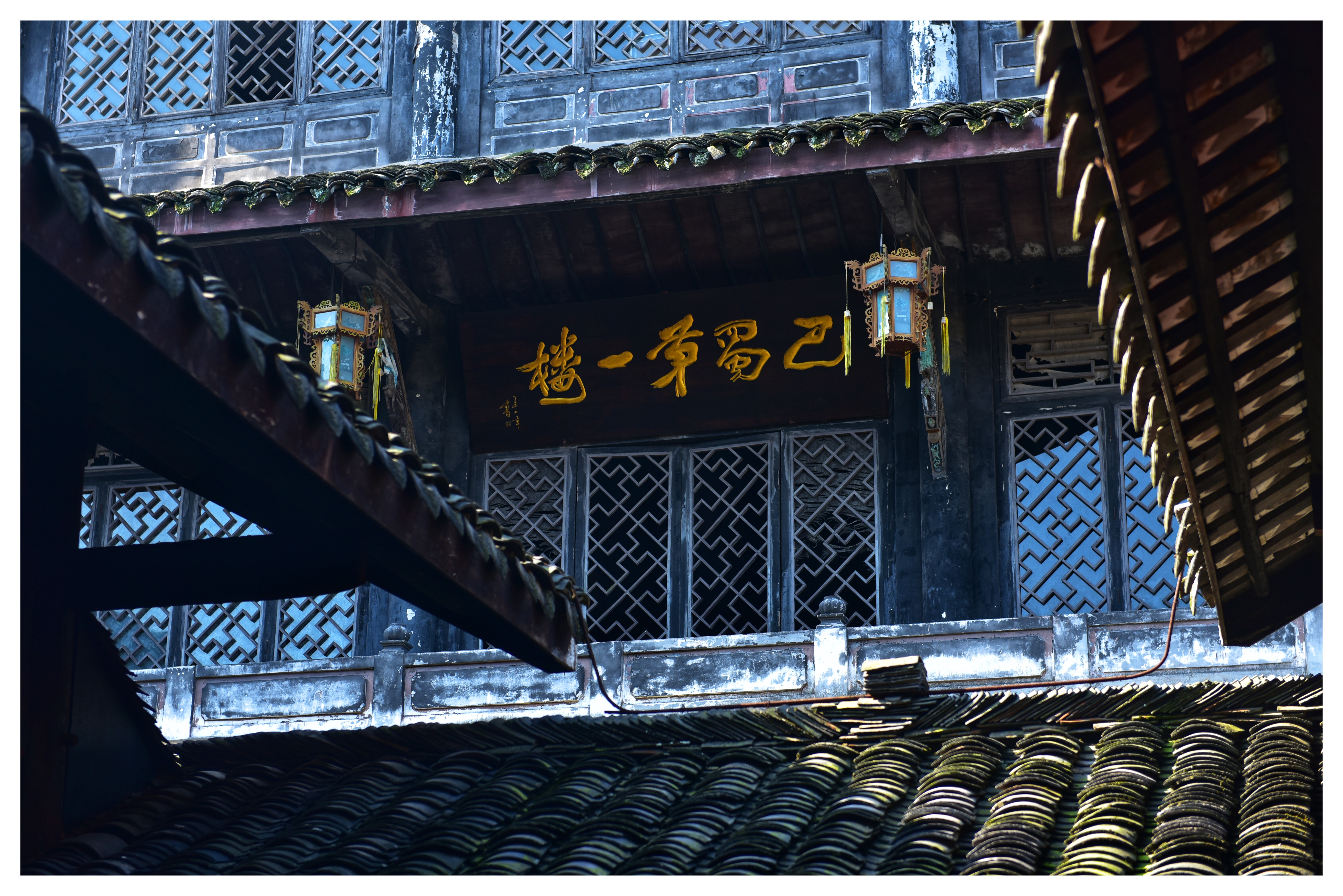 夕佳山民居堂屋屋顶的瓦片